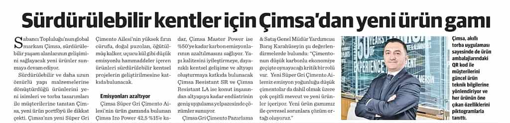 Çimsa ilk 9 ayda satışlarını reel olarak %34 artırarak 33,1 milyar TL’ye taşıdı
