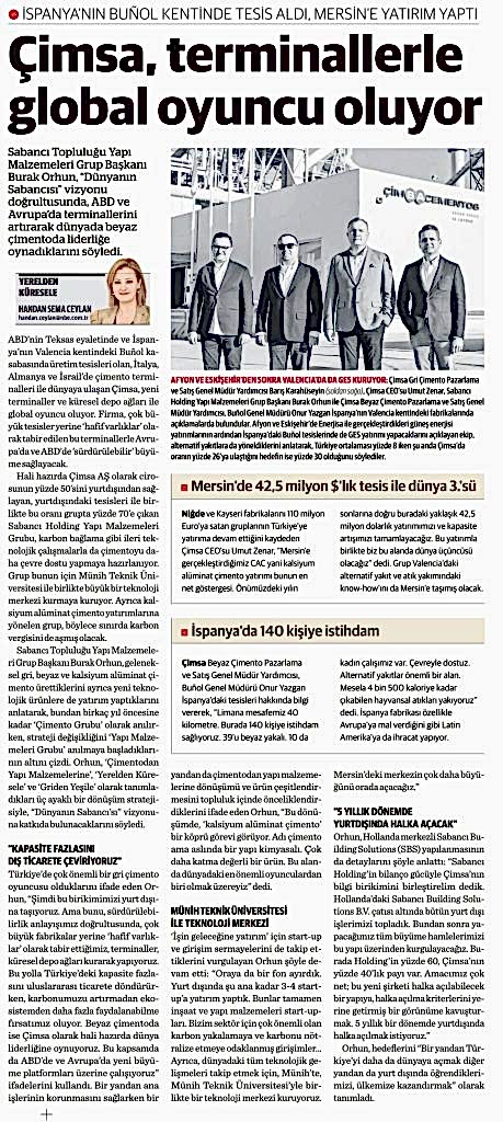 Çimsa, ABD’deki yeni yatırımını devreye alarak gri çimento üretimini 3 kıtaya taşıdı