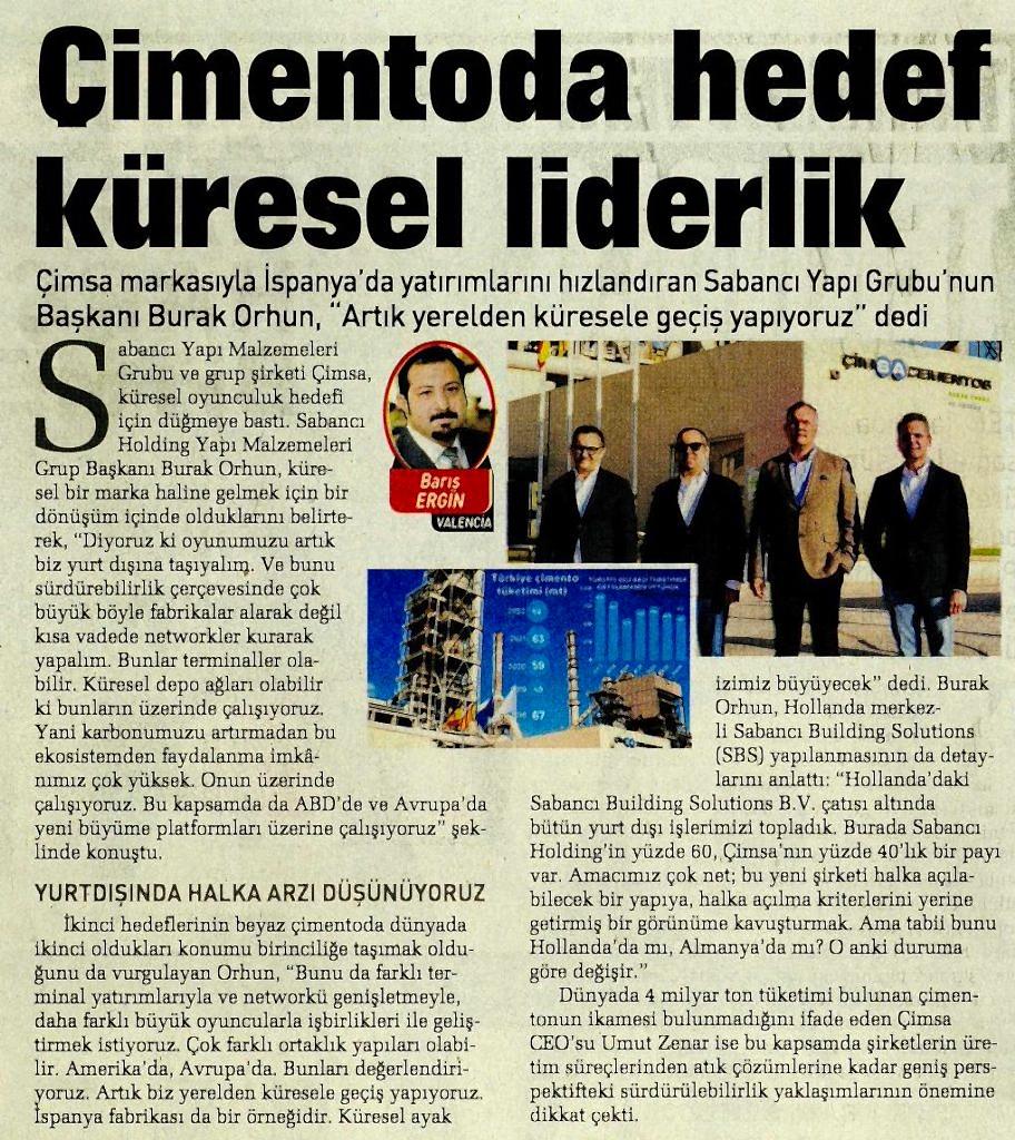 Çimsa ilk 9 ayda satışlarını reel olarak %34 artırarak 33,1 milyar TL’ye taşıdı